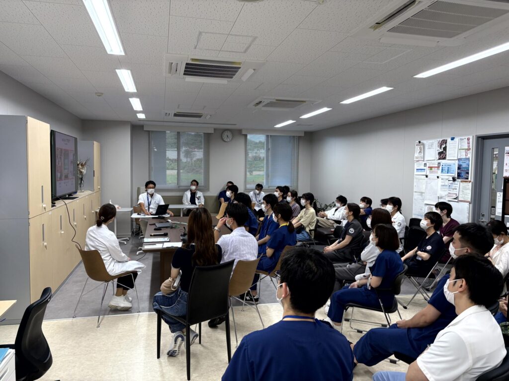 第一内科医局説明会を開催いたしました! 2025.08.04 / 研修会・その他 2025年7月31日(木)に、第一内科医局説明会を開催しました!当日は14名の医学生および研修医の皆様にご参加いただき、前城医局長をはじめ専攻医の先生方からの説明を熱心にご聴講いただきました。また説明会終了後の懇親会にも多くの方々にご参加いただき、活発な意見交換が行われるなど、大変有意義な会となりました! ご参加いただきました皆様、誠にありがとうございました。