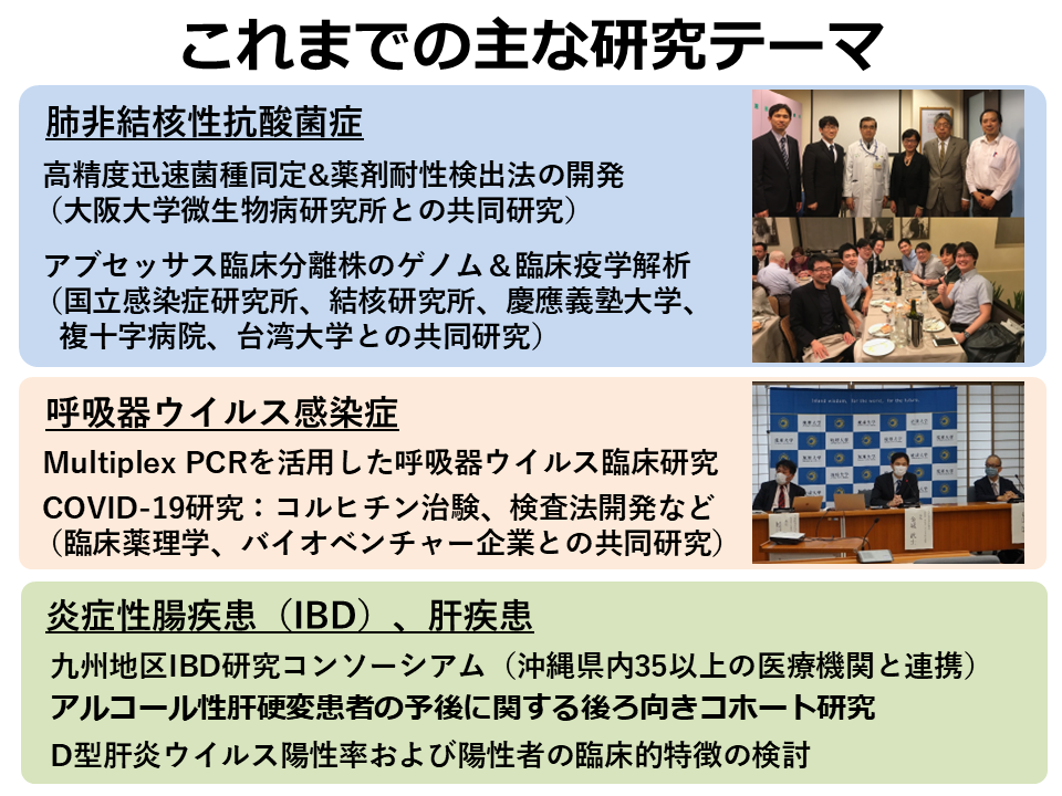 感染症・呼吸器・消化器内科学に関連する研究を幅広く行なっています。